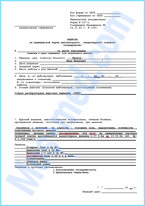 - Подтверждение болезни на работе — работодатели в Балашихе часто требуют выписку 027/у вместо обычной справки о болезни для подтверждения длительного отсутствия.